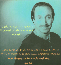 新アルバムのサンプルがつまらなかったので悪口でも書こうかと思って今日はこの人を取り上げることにしたんです、実は。あまりいいとは思わない組み合わせなんですがこの人の音楽はペルシャフレーバーのロックなんです。左上のアルバム「Faghat Beh khatereh tou (only For you) 」(2000年)の時はバンドとかロックって感じではなかったけどこれの後のアルバムごろからなんかロック系意識している。(2001年ごろ出たZENDEGIとか言うタイトルのアルバム位から・・(持ってない)。少し話がそれますが日本語の「前歴」みたいな単語だなあと思ったらなんとZendegiってペルシャ語で「過去」という意味だそうです、近い!もしかしたら日本語の「前歴」って言葉の語源はこのペルシャ語のZendegiかもしれないですね、インドでもこの言葉使ってますよね、よくバリウッド映画の歌の中で聞こえてきます。)