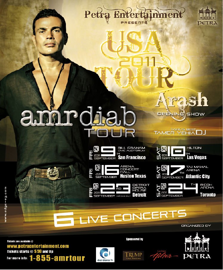 フェイスブックでお友達なんですけど3-4日前にこの人の投稿で「イラン系アーチストのArashという人(ヨーロッパで活動してるって言ってたかな) がアメリカにやってくる」というのがあって そこのプロモーターはアラブ系専門なのでペルシャ系アーチストのソロコンサートも手がけるなんて珍しいなと思って覚えていたんですよ。ペルシャ系とアラブ系歌手のジョイントっていうのは以前はよくありましたけど最近はなかったのでまさかそのお知らせこそが最近珍しくなってしまったペルシャ系&アラブ系のジョイントだったとは・・・しかもアラブ系の方のアーチストはAmrのおっさんだったとは~~!!